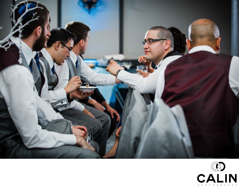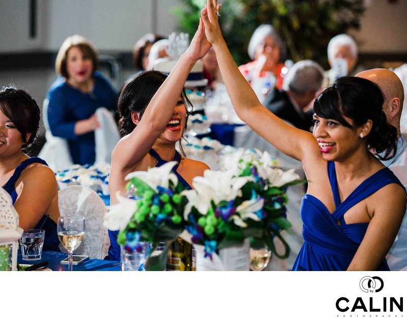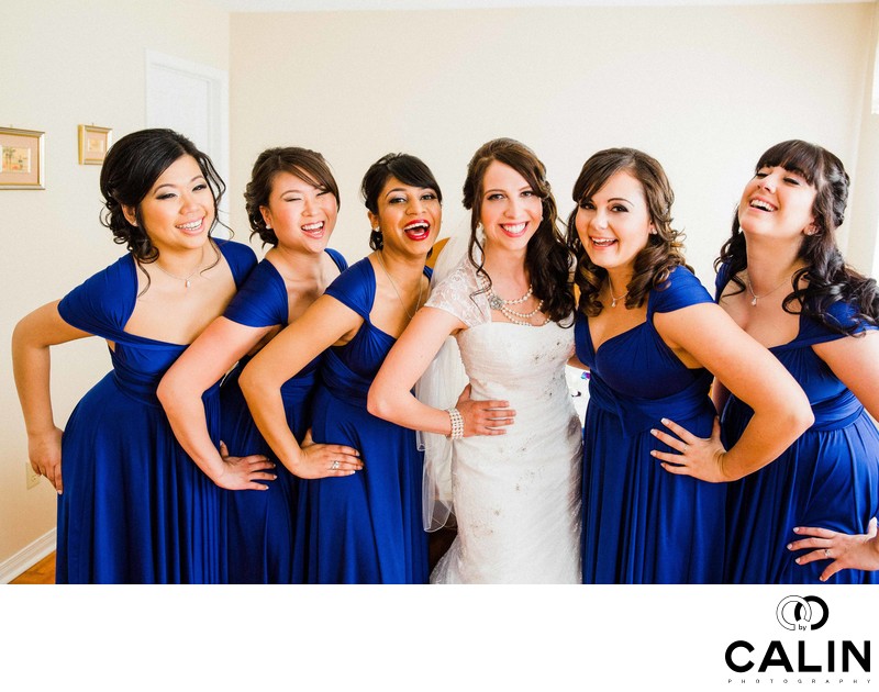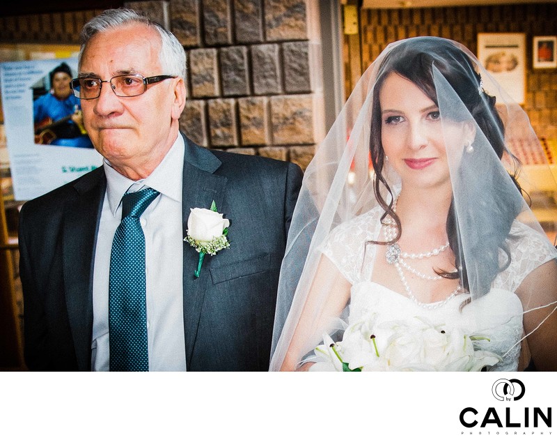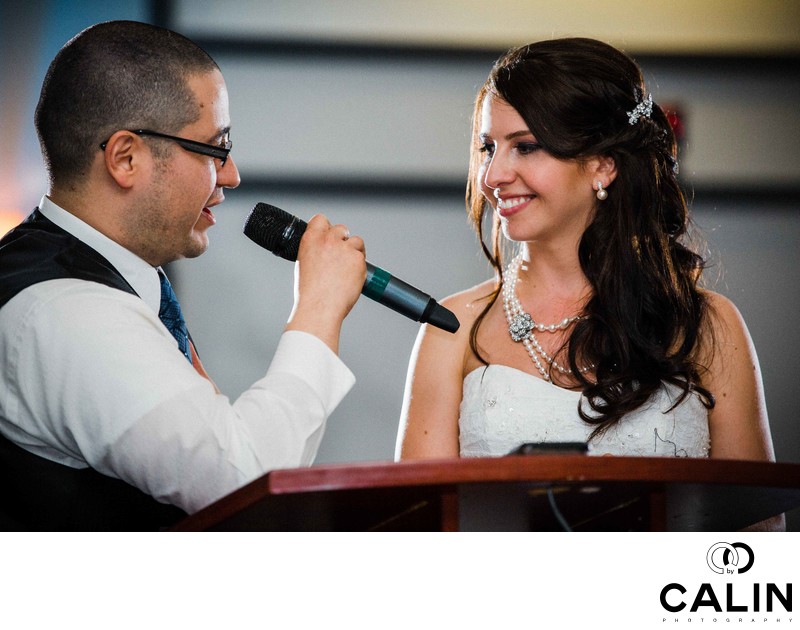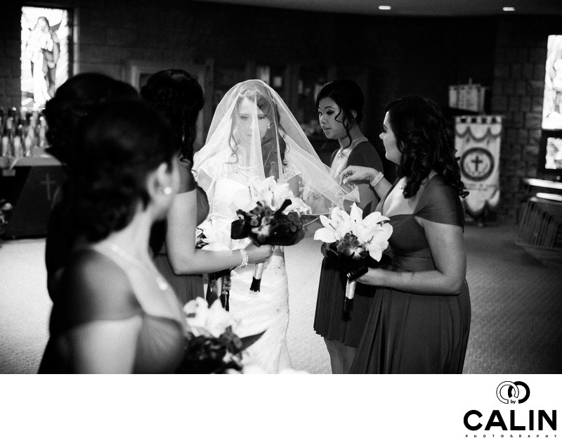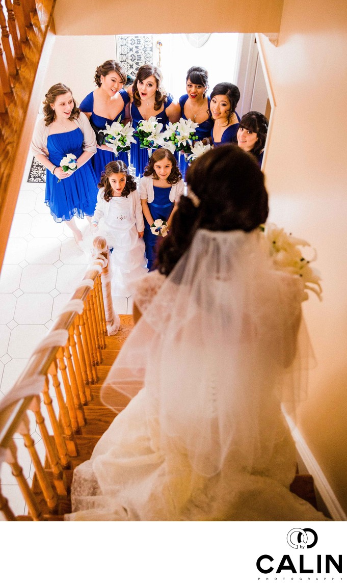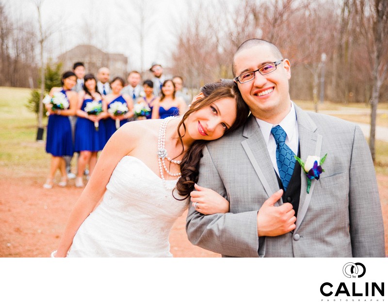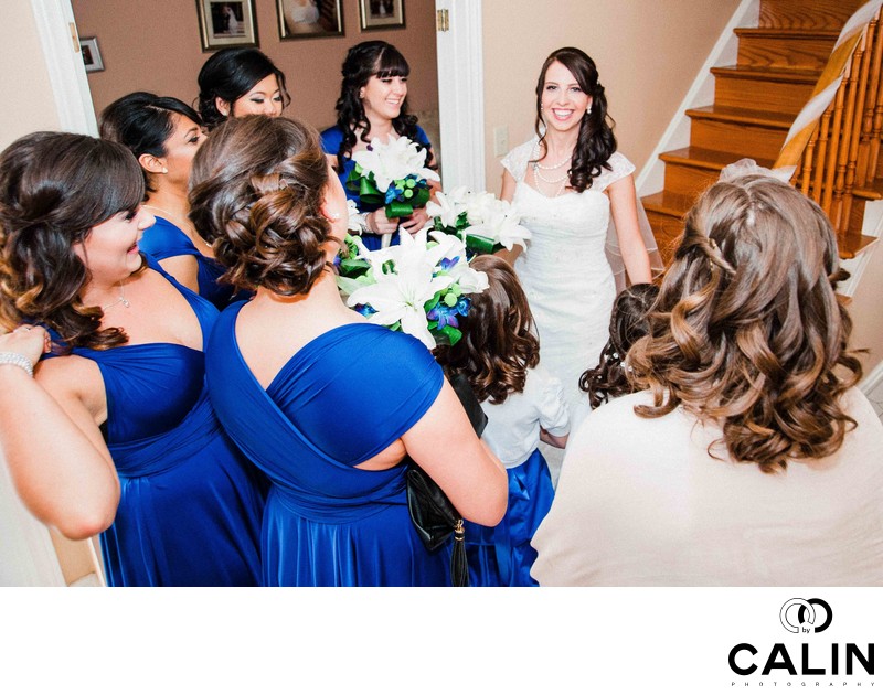 When the beautiful bride descended downstairs, her bridesmaids were in awe as you can see in the candid photograph I took at the moment. This is a photograph that couples often request, but it is rare to execute it so beautifully like I did on the special day. Generally, there is always something that goes wrong on the special occasion but for this special event, everything ran flawlessly from the hair and makeup to the ceremony and the reception. As such, we headed to the church where Ramiro and Marcella officially tie the knot in a very emotional ceremony. After that, we headed to the Vellore Hall Park in Woodbridge Ontario for creative portraits of the bride and groom and the bridal party. While we were taking a group photo of the bridal party, a real dinosaur appeared and started chasing them! Fortunately, the limo was close so we drove as fast as possible to the wedding venue where the newlywed couple had a few surprises for us. The biggest of them was a band of mariachi who started serenading the first dance. That took everyone by surprise including the groom and the wedding photographers. For the couple getting married we suggest that you share with us all the details of your special day so that we are prepared to capture those moments of love and happiness so you can cherish them forever.
