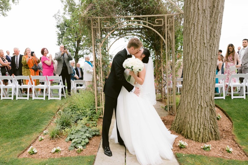 Outside, the meticulously maintained grounds showcase seasonal blooms and lush greenery. The manicured lawns slope gently toward the bluffs, creating a natural amphitheater effect for ceremonies facing the lake. This landscaping not only provides a beautiful setting but also offers multiple photography locations to capture your special day.