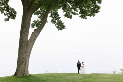 Weather permitting, sunset photos on the bluffs create some of the most memorable wedding images. The changing colors of the sky reflected on the water offer a romantic backdrop that highlights the emotion of your special day. Even in overcast conditions, the moody atmosphere of clouds over the lake can create dramatic, artistic wedding portraits.