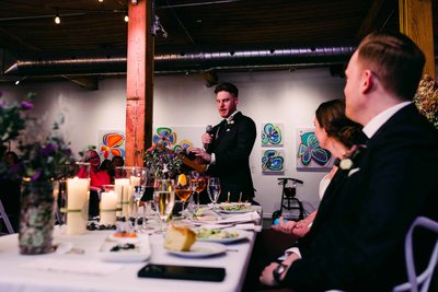 Twist Gallery can comfortably accommodate up to 140 seated guests or hold 250 people for a lively standing reception. The open-concept layout makes it a dream to photograph. Whether we’re capturing an emotional first dance or a heartfelt ceremony, there’s plenty of room to work with while still keeping the space cozy and full of energy. Based on my experience, couples and their guests are always relaxed here. It’s the perfect canvas for your dream wedding. Every detail shines—and so will your photos.